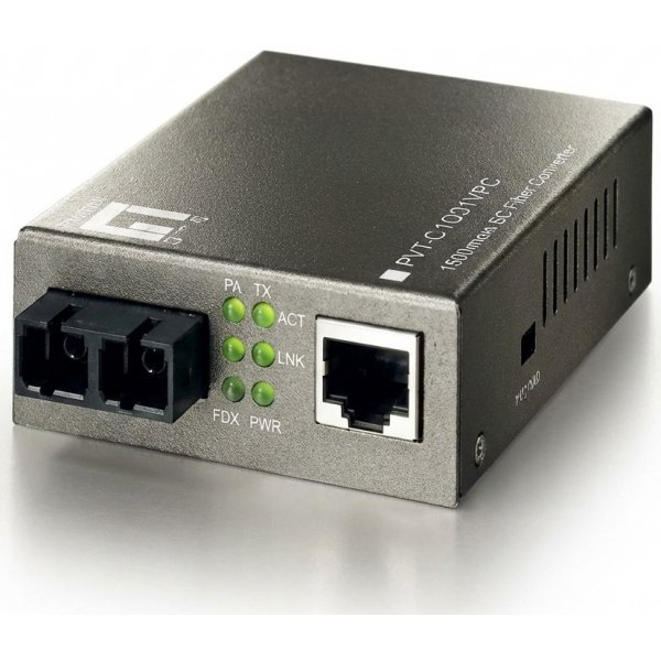 Fiber Multimode Converter 100TX to 100FX with 2 SC & 1 RJ45 inputs, Fast Ethernet 100Base-TX to Fiber 100Base FX converters.